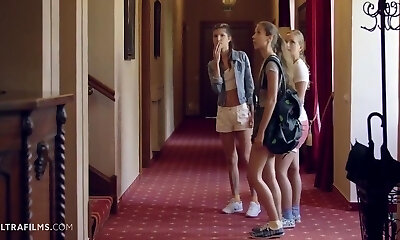 ¡el dueño de casa encuentra al las estudiantes minder desnudo en el sofá!