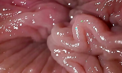 cámara lenta. primer plano de fricciones suaves: puto coño de primer plano extremo. creampie macro