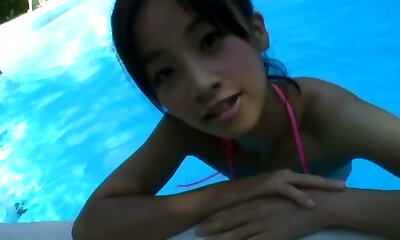 me masturbo en la piscina privada cuando la chica del servicio de habitaciones me trae el desayuno y me ayuda a terminar haciéndome una mamada