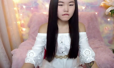 adolescente japonesa preparando su coño peludo para un poco de sexo caliente