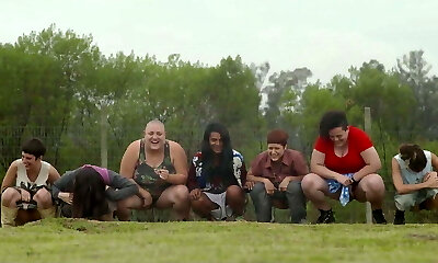 las damas tiran desesperadamente sus vejigas en el bosque