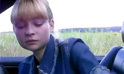 Decorating youthful face with cum outdoors!
