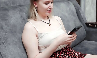 Ash-blonde russian fingering her vagina