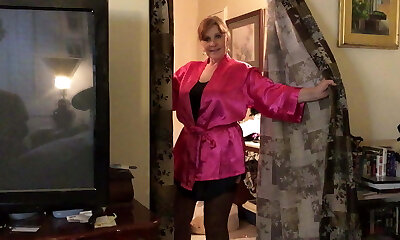 Attractive Mature milf in cock-squeezing dress and pantyhose strips