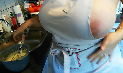 Euro Babe With Big Mammories Rubs Pussy to Climax in Kitchen