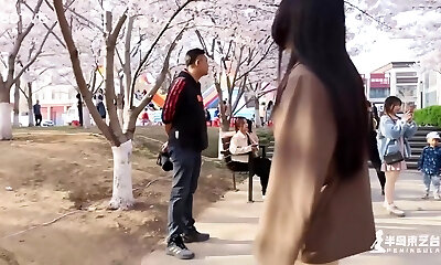 многолюдный фестиваль в прямом эфире с цветением сакуры