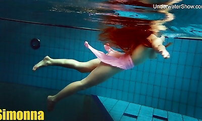 симонна горячая и возбужденная в общественном бассейне
